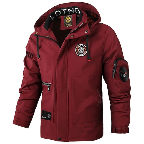 Herren Deutschland Nationalflagge Cargo-Jacke Windbreaker Militärjacke Praktisch Lässig Outdoor Campen und Wandern Bestickt Seitentaschen Frontreißverschluss Herbst Winter Stehkragen Langarm Schwarz