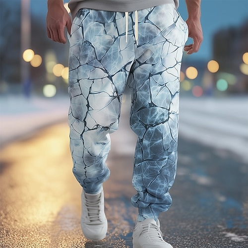 Herren Optische Täuschung Geknacktes Eis Jogginghose Hose Mittlere Taille Kordelzug Elastischer Bund Lässig Outdoor Campen und Wandern Jagd Sportliche Jogginghose mit Taschen Herbst Winter 3D-Druck