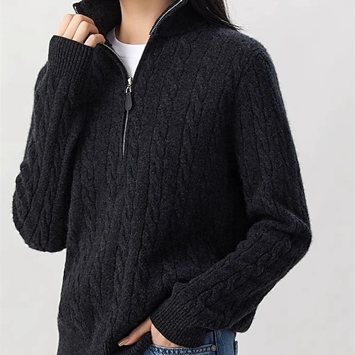 Per donna Felpa Maglione Elegante Moda Carino Tinta unica Dolcevita Cerniera Lavorato a maglia Manica Lunga Top Regolari Maglia All'aperto Casa Lavoro Blu Nero Autunno Inverno