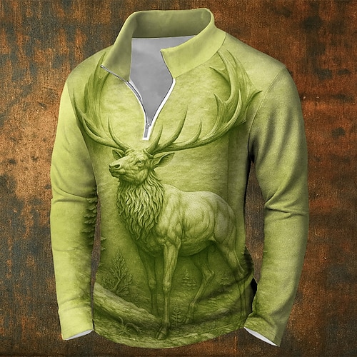 Per uomo Cervo Felpa 3D Con cerniera Casa Feste Lavoro Bianco Verde Autunno Tutte le stagioni progettista