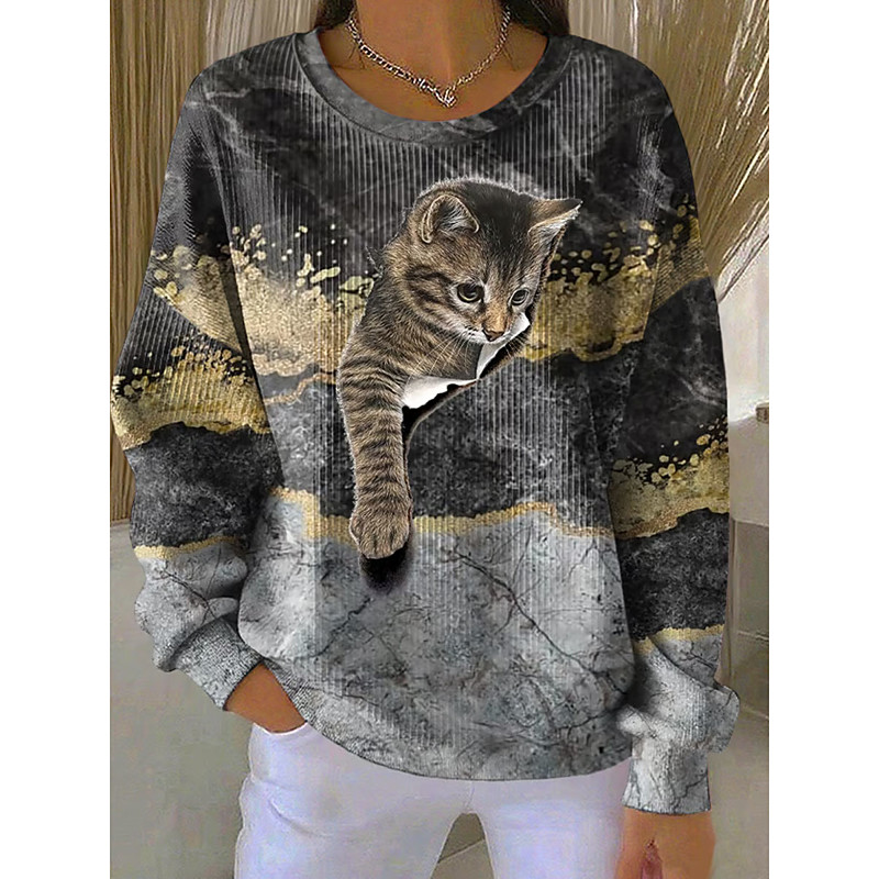 Women's Pullover Graphic Animal Warm Classic Casual Long Sleeve Crew Neck Regular Tops Home Street Dailywear Print Yellow Spring Fall Winter