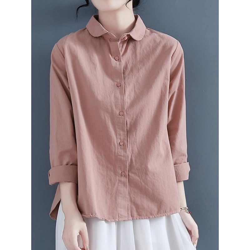 Women's Blouse Solid Color Stylish Classic Casual Long Sleeve Shirt Collar Regular Tops Daily Buttons Blue Black White Pink Green Spring Fall