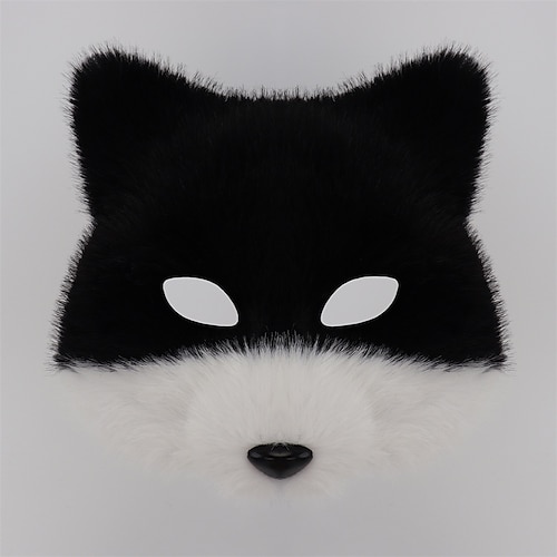 Maschera di volpe a mezza faccia con pelliccia – maschera di animale realistica per balli in maschera, Halloween, cosplay, feste e spettacoli teatrali