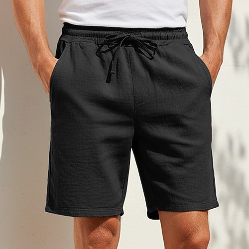Herren Shorts Leinenshorts Sommershorts Kordelzug Tasche Elastischer Bund Einfach Komfort Atmungsaktiv Kurz Lässig Täglich Ferien Mode Klassicher Stil Schwarz Weiß