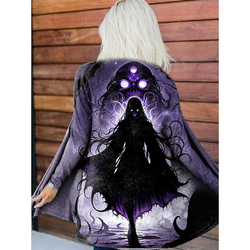 Women's Coat Lightweight Comfortable Print Vintage Artistic Casual Skull Casual Long Collarless Loose Fit Long Sleeve Outerwear Black Blue Purple Spring Fall