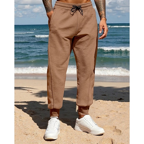 Herren Jogginghose Hose Kordelzug Tasche Elastischer Bund Einfach Komfort Sport im Freien Täglich Mode Lässig Schwarz Khaki Mikroelastisch
