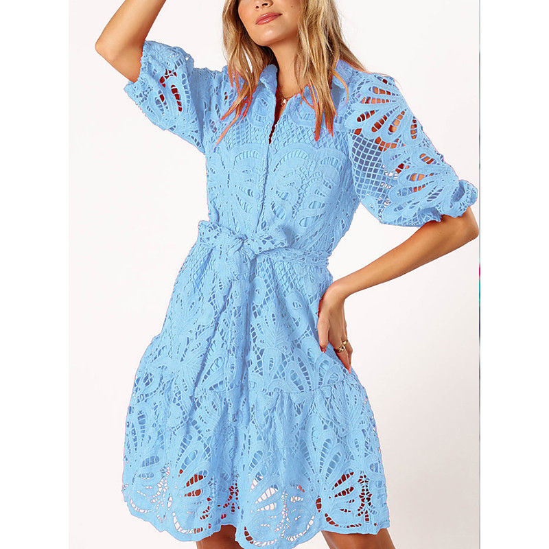 Women's Midi Dress Black Dress Lace Dress Cocktail Dress Formal Dresses Elegant Casual Street Date Loose Fit Plain Half Sleeve Shirt Collar Blue Black Pink Summer Spring