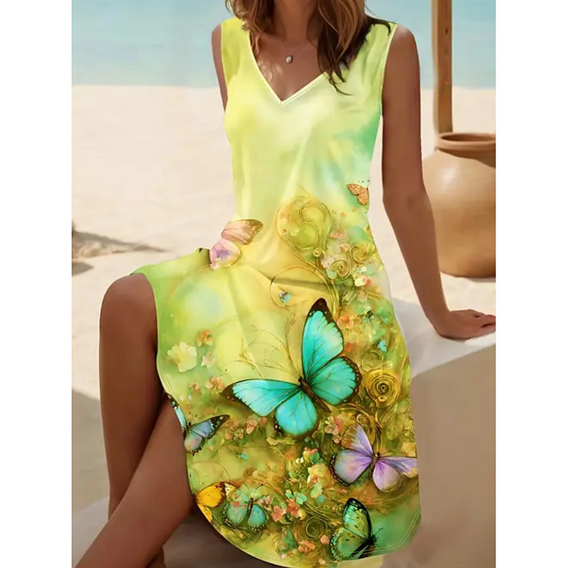 Women's Mini Dress Sundress Vacation Party Casual Daily Sports Holiday Floral Graphic Sleeveless V Neck Yellow Light Green Sky Blue Summer Spring