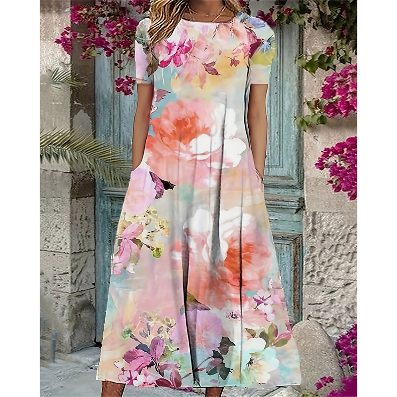 Women's Midi Dress Casual Dress Summer Dress Fashion Modern Daily Beach Weekend Regular Fit Flower Short Sleeve Crew Neck Yellow Pink Summer Spring Fall