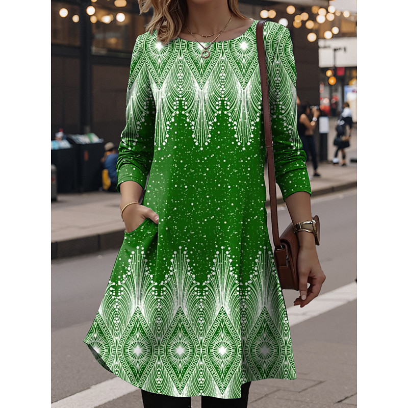 Women's Mini Dress Petite Dress Casual Dress Swing Dress Boho Dress Casual Daily Regular Fit Geometric Long Sleeve Turtleneck Green Summer Spring Fall