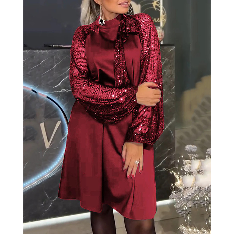 Women's Mini Dress Sequin Dress Party Dress Modern Party Cocktail Party Regular Fit Plain Long Sleeve Crew Neck Blue Black Red Fuchsia Spring Fall