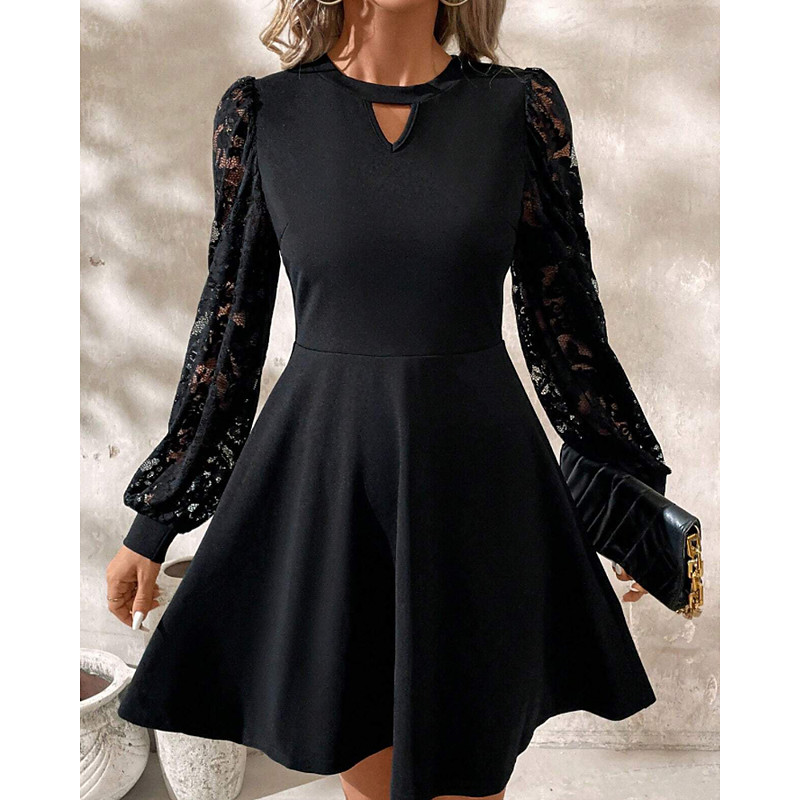 Women's Mini Dress Black Dress Lace Dress Elegant Modern Lantern Sleeve Outdoor Birthday Cocktail Party Slim Plain Long Sleeve Crew Neck Black Spring Fall