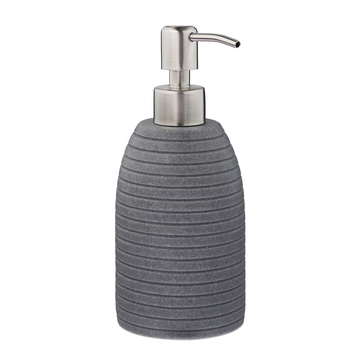 Relaxdays Seifenspender, 300 ml, nachfüllbar, Bad, WC, Küche, Flüssigseifenspender, Polyresin, Edelstahlpumpe, grau