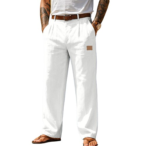Per uomo Pantaloni di Lino Pantaloni Pantaloni Estivi Elastico in vita Gamba Dritta Vita alta Tinta unica Comodità Traspirante Lunghezza intera Affari Affari Nero Bianco Vita Alta Inelastico