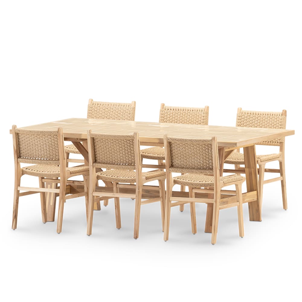 Set da pranzo 6 posti tavolo ceramica beige 205x105