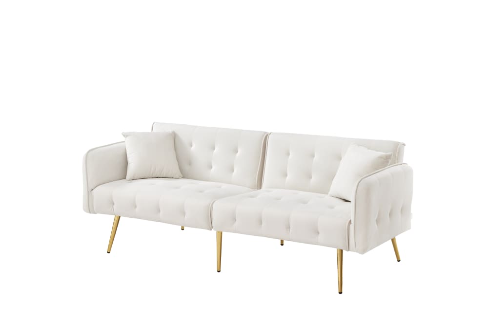 Divano letto a 2 posti in tessuto bianco con gambe dorate