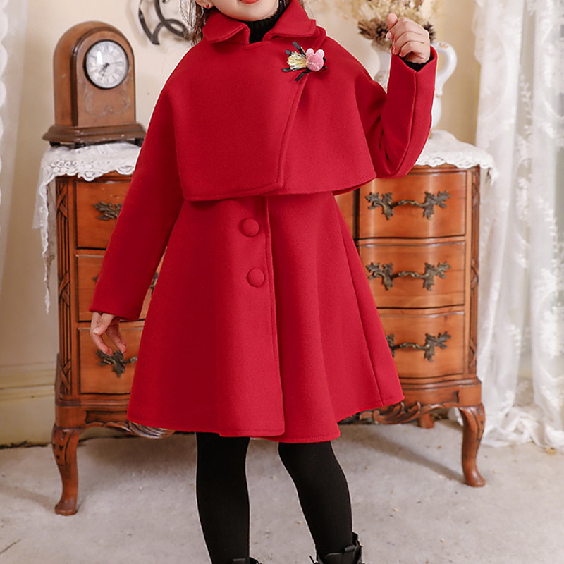 Girls' 3D Plain Coat Long Sleeve Fall Winter Cute Adorable Kids 3-12 Years Daily Regular Fit