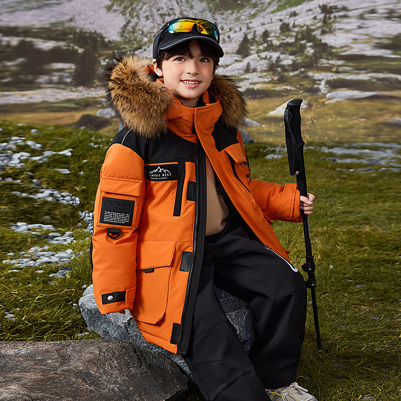 Kids Unisex Down Jacket Outdoor Jacket Outerwear Solid Color Camo Long Sleeve Pocket Keep Warm Windproof Coat Outdoor Daily Basic Black Red Orange Winter 5 years