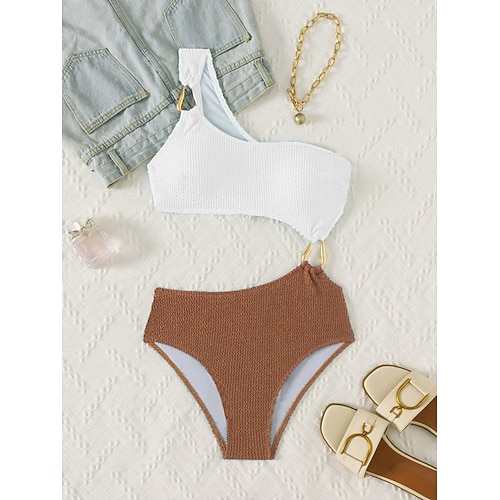Costume da bagno intero da donna monokini con spalla unica controllo della pancia vita alta snella senza schienale abbigliamento da spiaggia monocromatico scollatura asimmetrica senza maniche