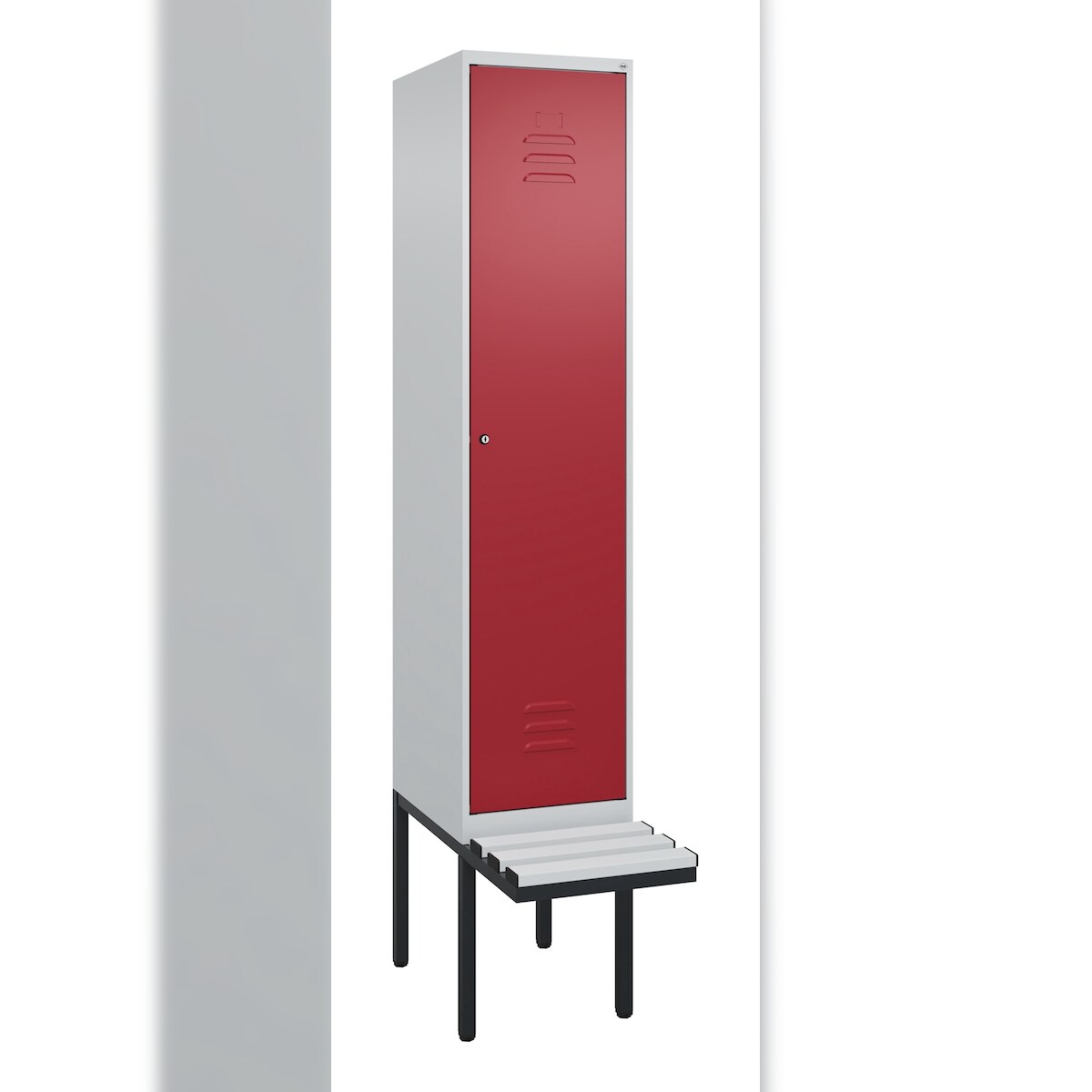 C+P Spind Classic PLUS, Kunststoff schwebende Sitzbank, 1 Abteil, HxBxT 212x40x82cm, Zylinderschloss, Hellgrau/Rubinrot von PROREGAL