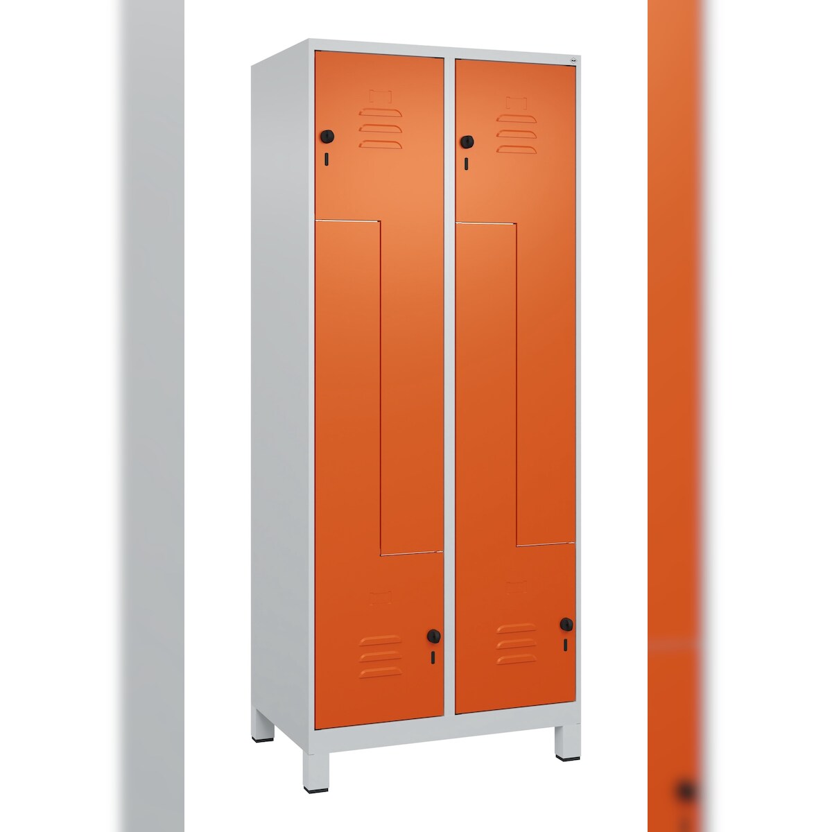 C+P Z-Spind Classic PLUS, Füßen, 4 Abteile, HxBxT 195x80x50cm, Sicherheitsdrehriegel, Hellgrau/Reinorange von PROREGAL