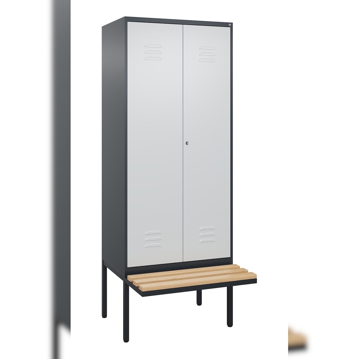 C+P Spind Classic PLUS, schwebender Sitzbank aus Buche 2 Abteile, HxBxT 212x80x82cm, Zylinderschloss, Hellgrau/Anthrazit von PROREGAL