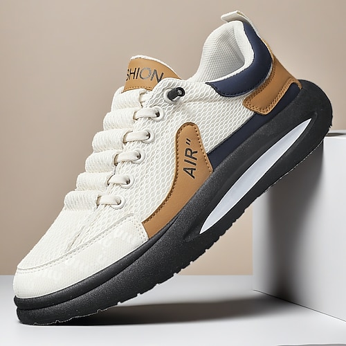 Sneakers da uomo in mesh leggero con dettagli in similpelle, design sportivo casual, comode per l'uso quotidiano, per camminare e viaggiare