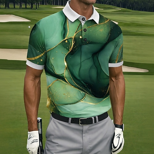 Per uomo Marmo Golf Polo Sportivi Manica Corta Magliette polo Camicie con Colletto Casual Athleisure Bottoni Estate Primavera Blu Viola Verde