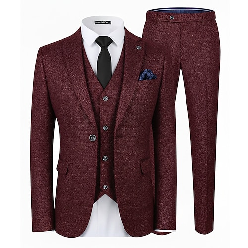 Uomo Matrimonio Affari Completi in Tweed Bavero sciallato Nero Borgogna Quotidiano Formale Tinta unita Vestibilità aderente 3 pezzi Monopetto a un bottone