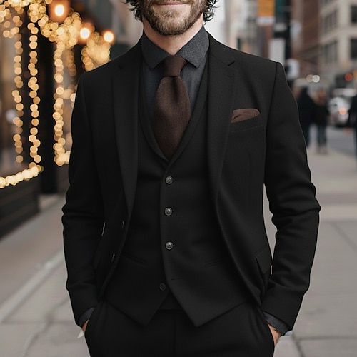 Uomo Casuale Affari Completi in Tweed Bavero classico Nero Borgogna Quotidiano Affari Tinta unita Vestibilità su misura 3 pezzi Monopetto Due Bottoni