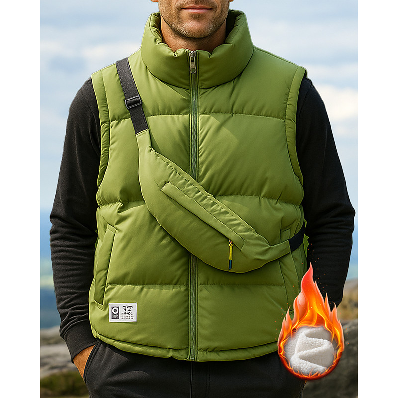 Men's Hiking Jacket Puffer Vest Thermal Vest Sleeveless Top Outdoor Thermal Warm Winter Zipper Polyester Black White Green Hunting Fishing Climbing