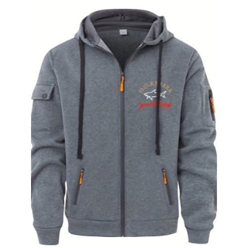 Per uomo Felpa con cappuccio Felpa con cappuccio a zip intera Nero Vino Blu marino Grigio chiaro Con Cappuccio Animale Lettera Tasca Sport Outdoor Quotidiano Ferie Poliestere Streetwear Essenziale
