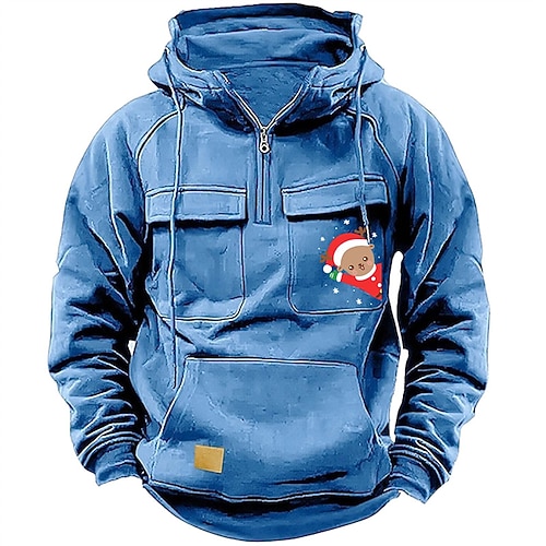 Per uomo Felpa con cappuccio Felpa con cappuccio e zip corta Nero Rosa Vino Blu Verde Con Cappuccio Babbo Natale Ogni Coulisse Tasca Sport Outdoor Quotidiano Ferie Natale Streetwear Casual