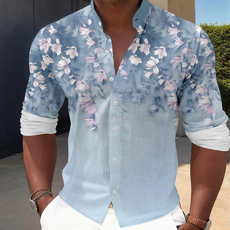 Men's Floral Dress Shirt Button Up Shirt Long Sleeve Hawaiian Casual Vacation Party Evening Wear Daily Summer Spring Fall Grandad Collar Band Collar 3D Print Pink Blue Green