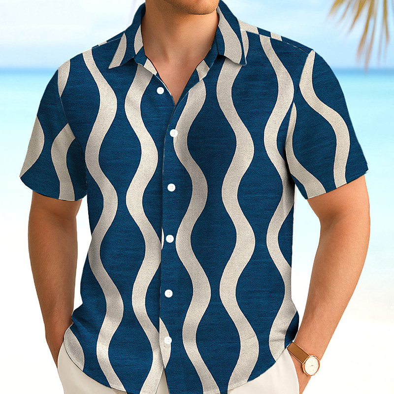 Men's Geometric Waves Shirt Summer Shirt Button Up Shirt Short Sleeve Fashion Casual Outdoor Vacation Dailywear Summer Spring Turndown 3D Print Collared Shirts Wine Green Dark Blue