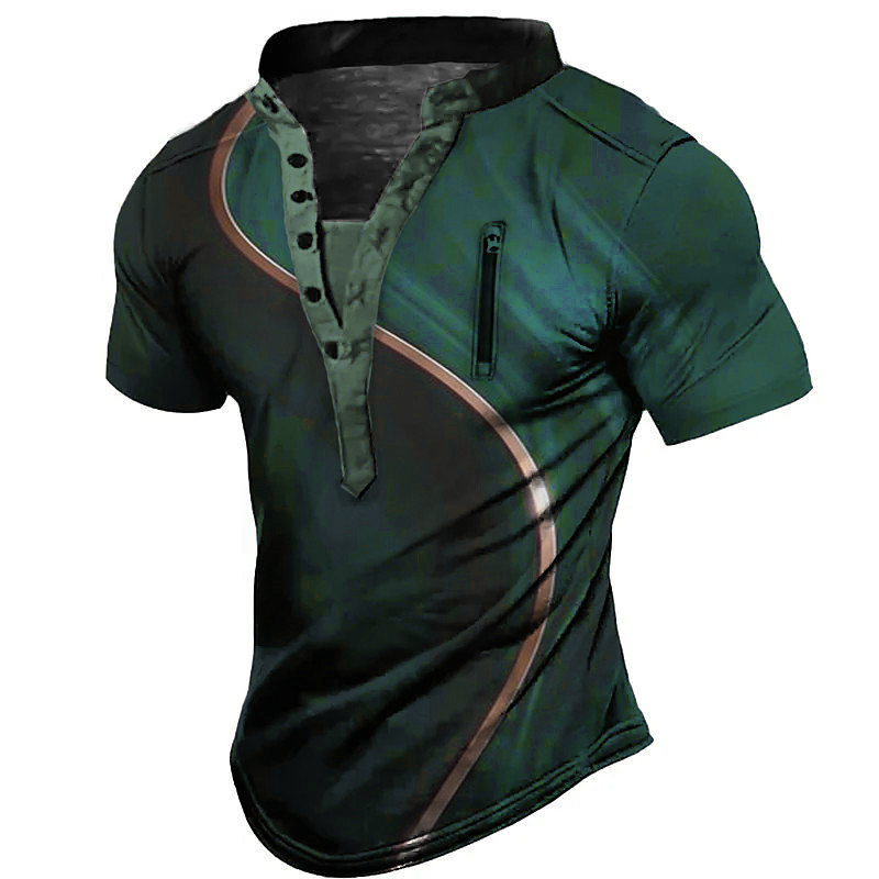 Men's Graphic Color Block T Shirt Henley Shirt Vintage Shirt Short Sleeve 3D Print Fashion Designer Casual Outdoor Daily Sports Summer Black / Green Pink Red Navy Blue Blue Stand Collar Henley T-Shirt