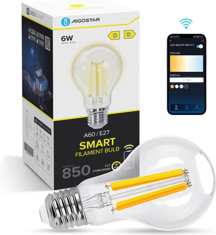 Aigostar LED Lamp - E27 A60 - WiFi - Dimbaar - Spraakbediening - Slimme Dimfunctie