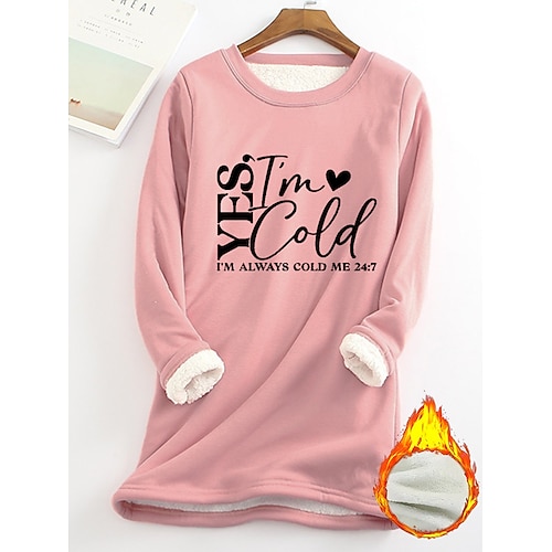 Damen Pullover Sweatshirt Grafik Buchstabe Warm Lässig Flauschig Langarm Rundhalsausschnitt Lange Oberteile Straße Lässig Hellrosa Schwarz Gelb Dunkelpink Rote Herbst Winter