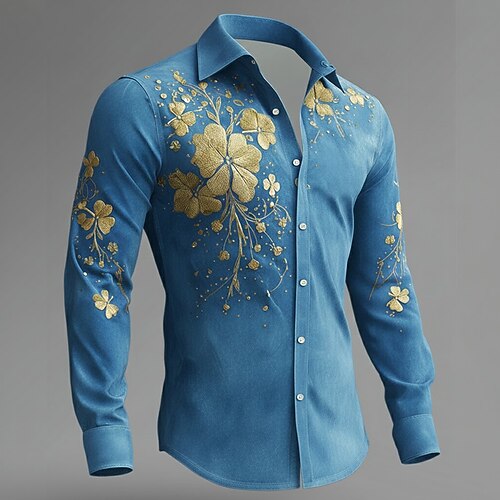 Festa di San Patrizio Per uomo Quadrifoglio Trifoglio Camicia Camicia con Bottoni Manica Lunga Vintage Retrò Feste Ferie Primavera Autunno Collo ripiegato Stampa 3D Camicia tipo lino Blu Verde chiaro
