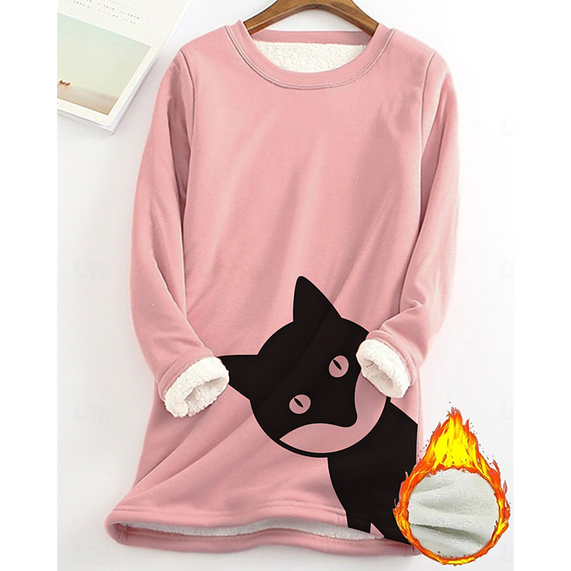 Women's Pullover Sweatshirt Animal Fashion Basic Casual Long Sleeve Crew Neck Long Tops Street Dailywear Casual Print Fleece Lined Black Yellow Pink Dark Pink Blue Fall Winter