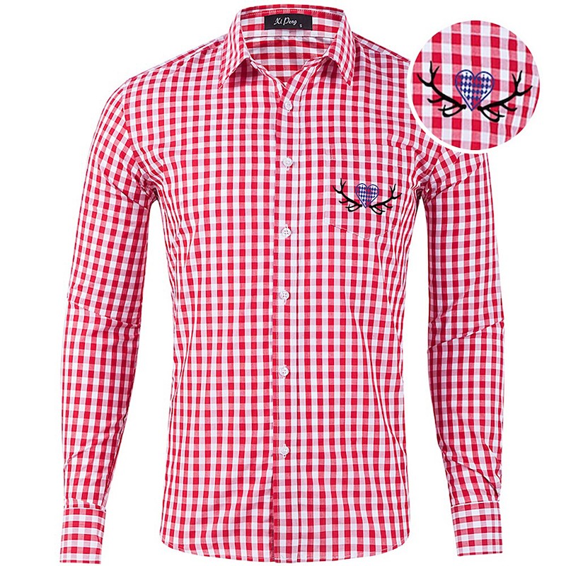 Men's Oktoberfest Shirt Lederhosen Shirt Band Collar Linen Shirt 100% Cotton Beer Costume Short Sleeves Bavarian German Alpine Wiesn Party Beer Carnival Festival Traditional Style Cloth