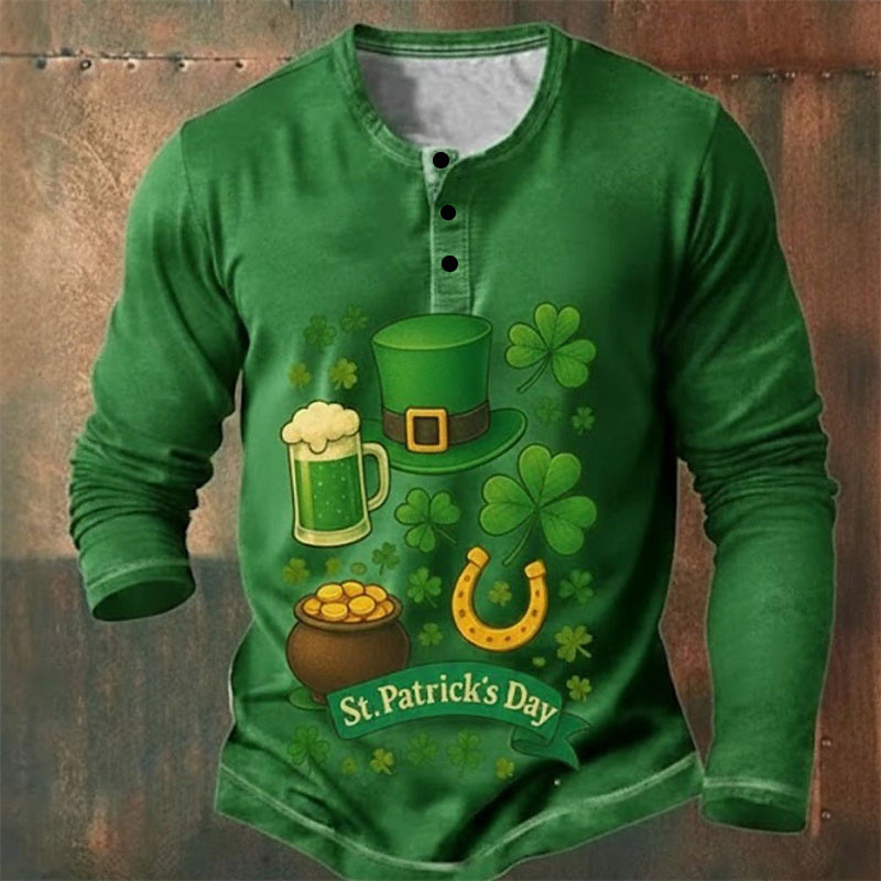 St. Patrick's Day St. Patrick St. Patricks Day Herren Kleeblatt Bier T Shirt Henley Hemd T-Shirt Kurzarm T-Shirt 3D-Druck Henley Hemd Sport Mode Designer Täglich Urlaub Party Schwarz Grün Armeegrün