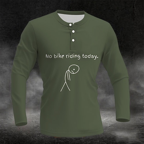 Men's Long Sleeve Henley Graphic T-Shirt, 'No bike riding today' Funny Cycling Biker Lifestyle Design