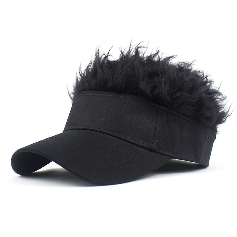 Novelty Hair Visor Cap with Peaked Wig Adjustable Baseball Hat with Hair