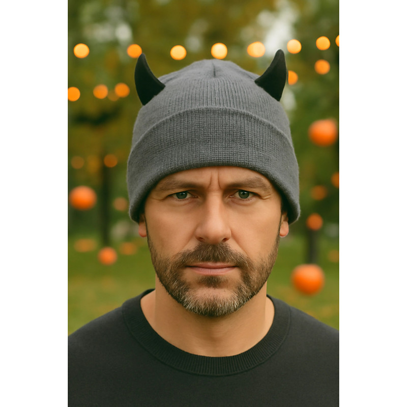 Unisex Halloween Devil Horn Beanie Hat – Knitted Warm Skull Cap with 3D Horns for Men and Women, Cosplay Party Costume and Outdoor Wear
