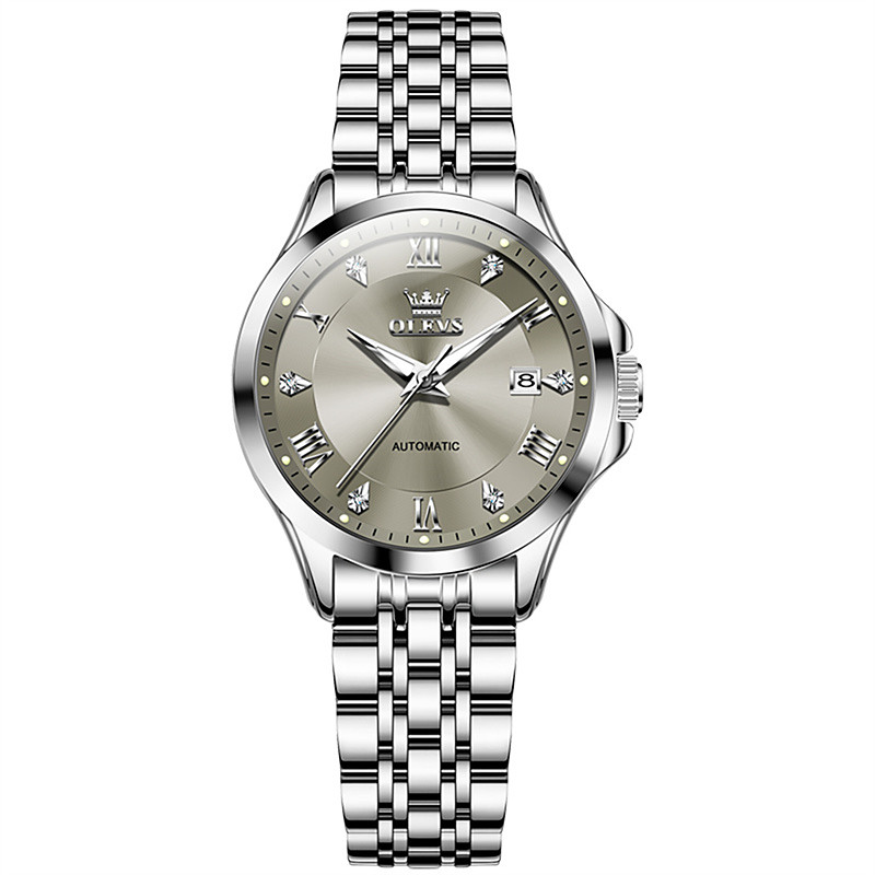 Olevs Olevs Brand Women'S Fashion Mechanical Watch Luminous Calendar Fashion Trend Roman Dial Quartz Watch Simple Leisure Waterproof Sports Ladies Wristwatch Rhinestone