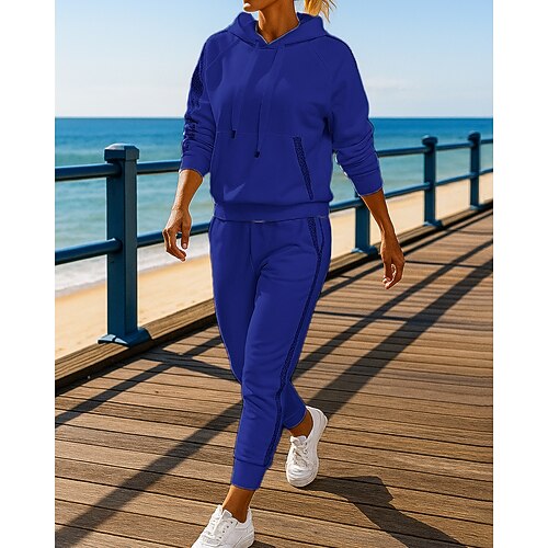 Per donna Tuta da 2 pezzi Felpa con cappuccio Lounge Set di tute da ginnastica Tasca Tinta unita Completo Abbigliamento Autunno Nero Bianco All'aperto Viaggio Sportivo Traspirante Manica Lunga Sport