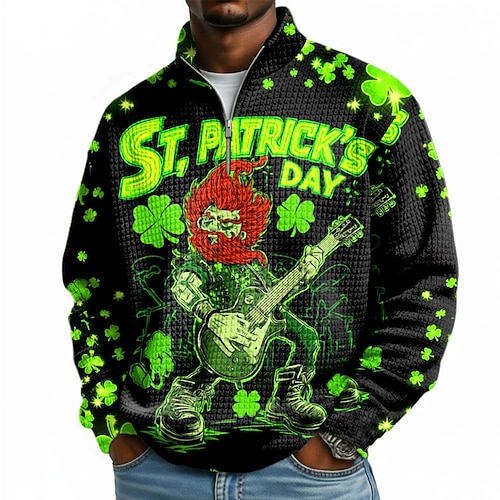Giorno di San Patrizio Per uomo Trifoglio Irlanda Nido d'ape Felpa Moda Esagerato Festa Collo Alto All'aperto Abbigliamento casual alla moda Club Feste Verde 2# Verde 3# Verde Con zip Autunno Inverno