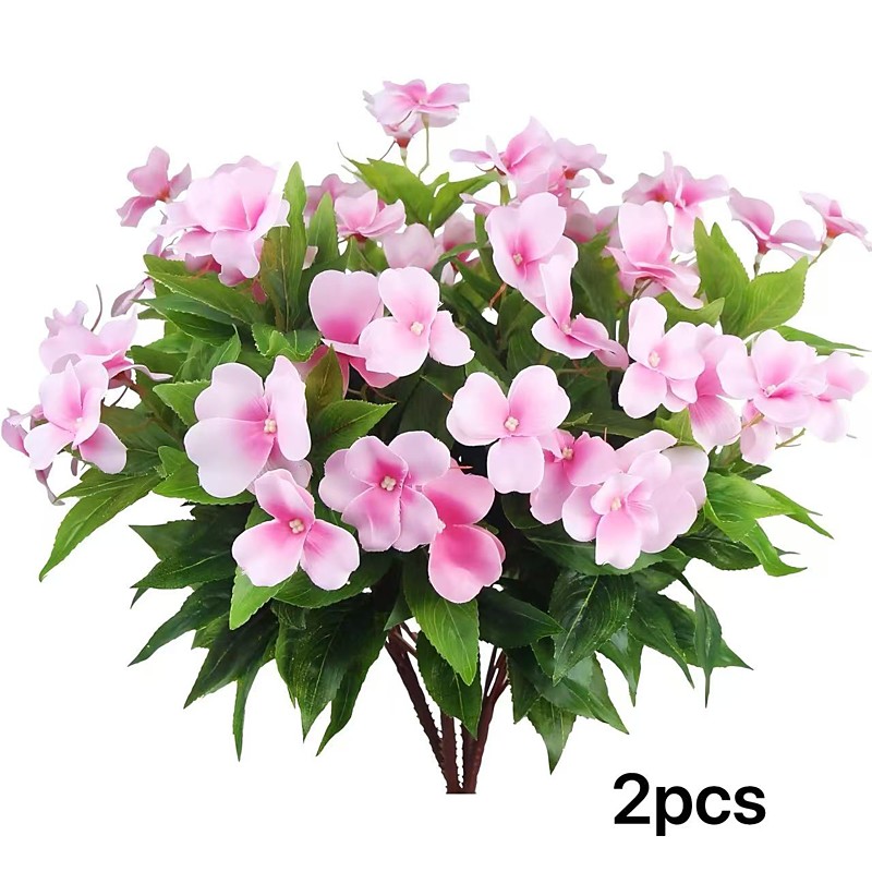 2PCS Artificial Impatiens Hanging Flowers for Indoor Outdoor Decor, Faux Flower Garland for Lawn, Garden, Balcony, and Patio Decoration