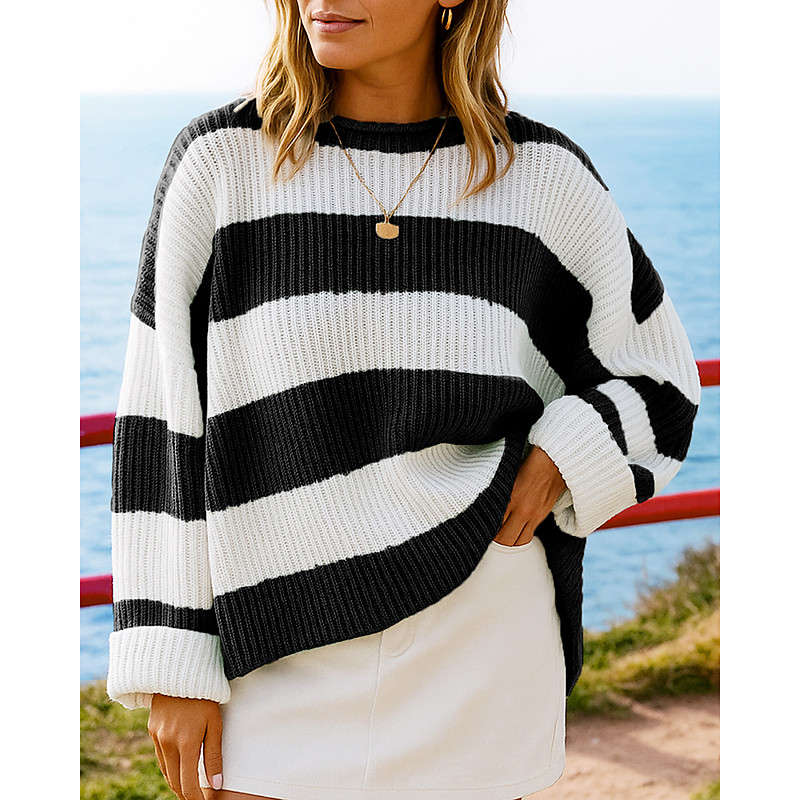 Women's Lounge Top Knitted Sweatshirt Long Sleeve Top Athleisure Fall Striped Fashion Outdoor Travel Sports Sportswear Activewear Black Yellow Blue